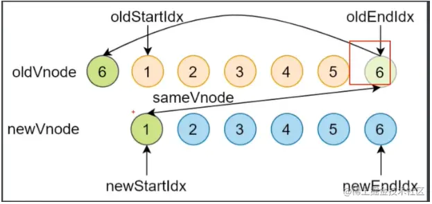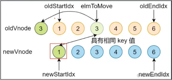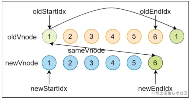 oldStartVnode / newEndVnode(旧开始节点 / 新结束节点)相同