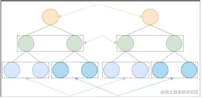 - 因此只需要找 同级别 的子节点依次比较,然后再找下一基本的节点比较,这样算法的时间复杂度为 O(n)