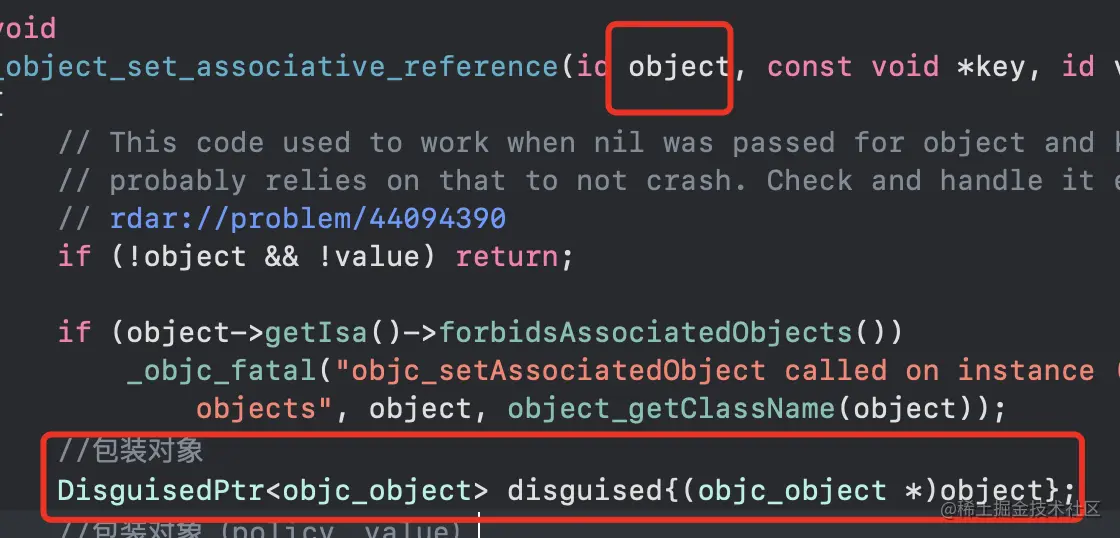 DisguisedPtr<objc_object> disguised{(objc_object *)object};