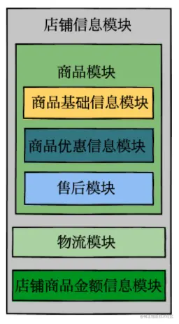 | 3 | 店铺模块 | - | - | 包含店铺信息、商品信息、参与的优惠信息、可选的物流方式、商品售后信息等 |