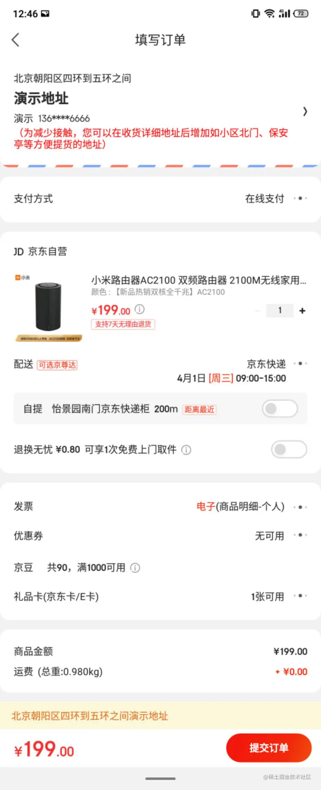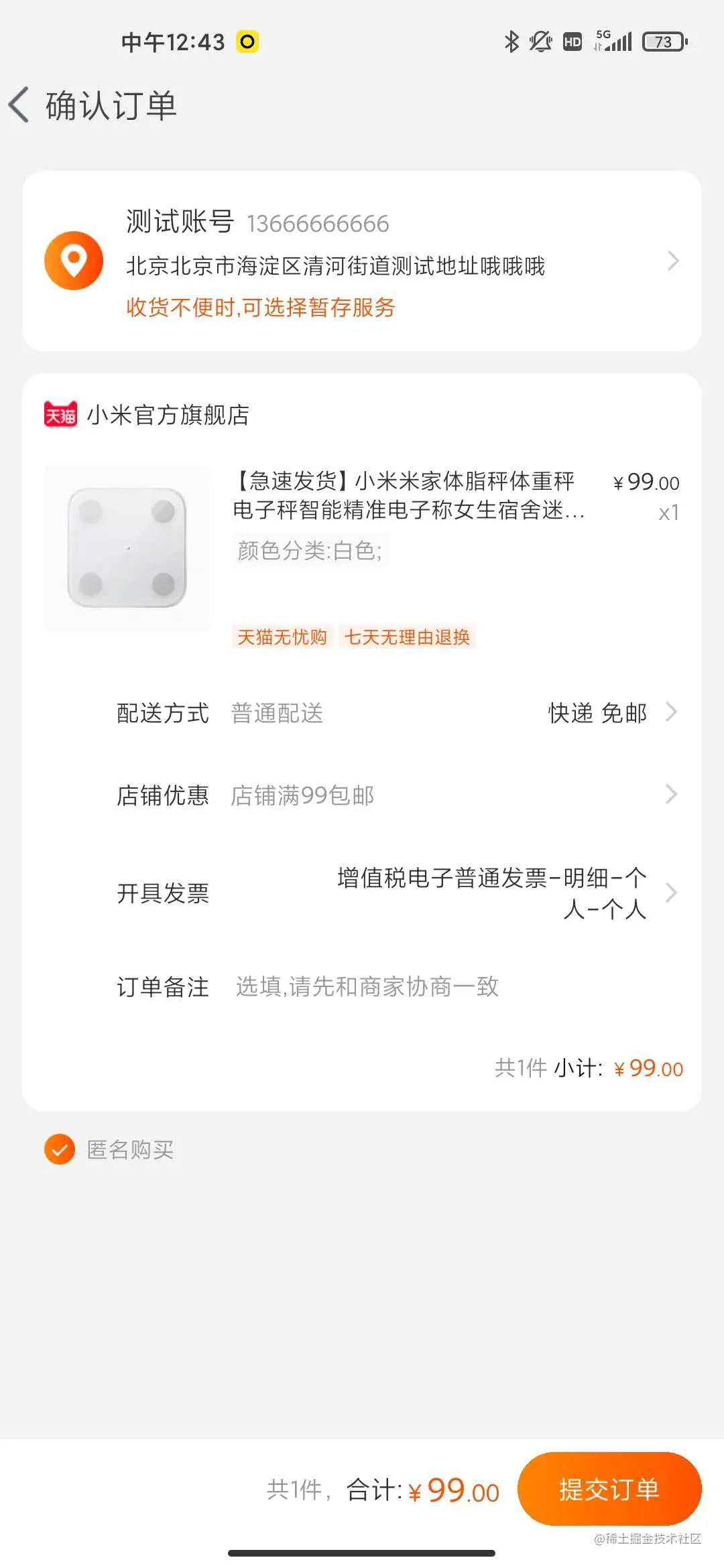 如上,订单结算页面的内容基本介绍完毕了,有任何问题随时到我们的github项目下留言 github.com/skr-shop/ma…。