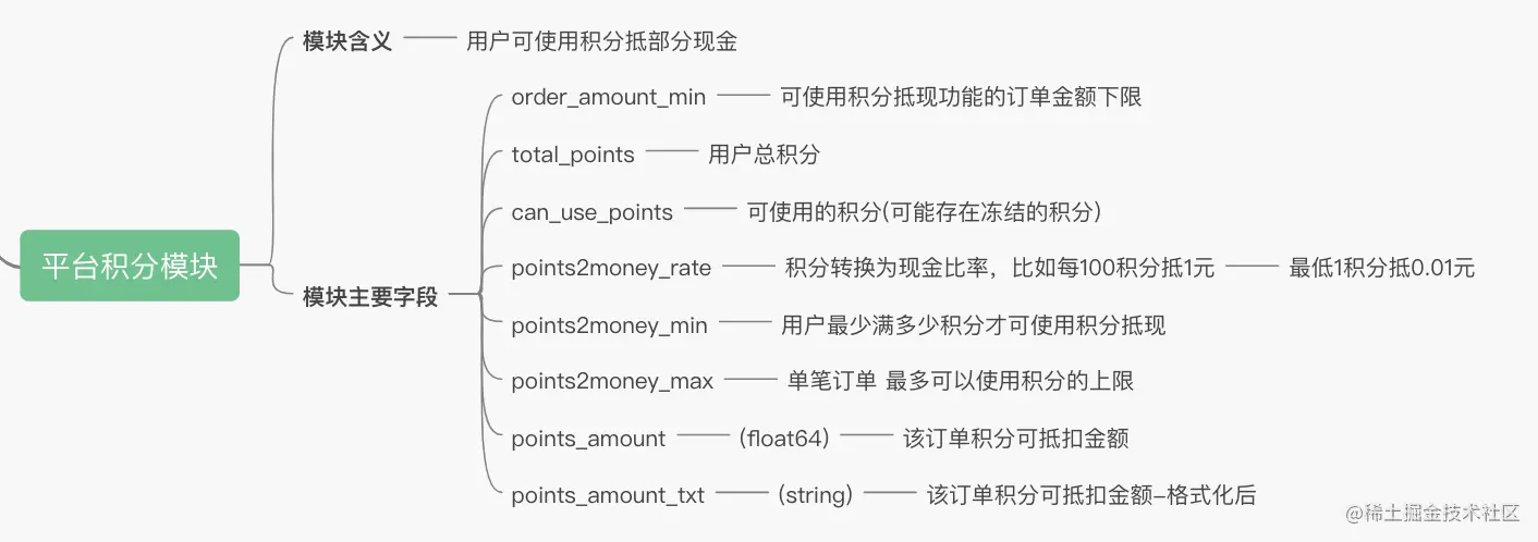 | points2money_max | int | - | - | 单笔订单 最多可以使用积分的上限 |
