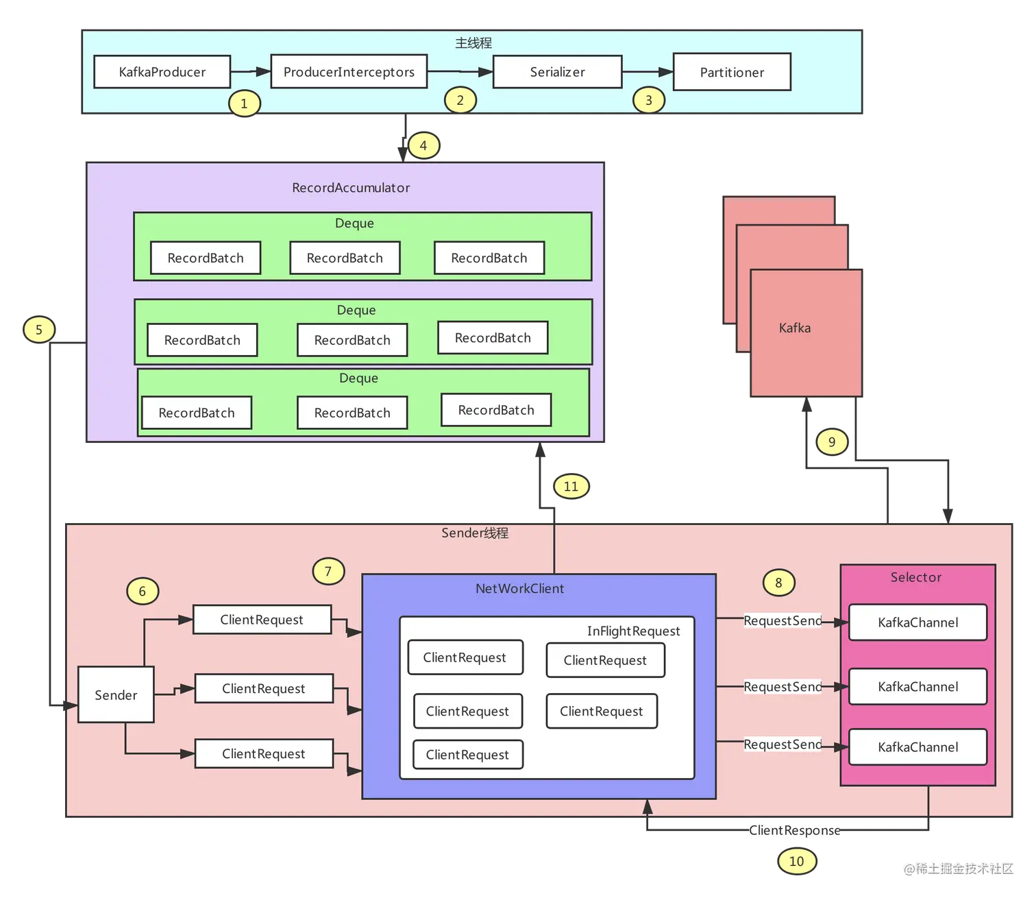 上面的问题中提到一个参数max.in.flight.requests.per.connections=1,该参数的作用是在重试次数大于等于1时,保证数据写入的顺序。如果该参数不为1,那么当第一个批次写入失败时,第二个批次写入成功,Broker会重试写入第一个批次,如果此时第一个批次重试写入成功,那么这两个批次消息的顺序就反过来了。