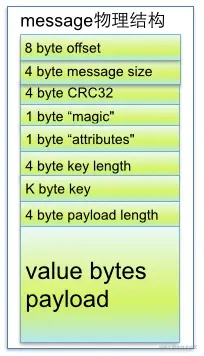 | 8 byte offset | 在parition(分区)内的每条消息都有一个有序的id号,这个id号被称为偏移(offset),它可以唯一确定每条消息在parition(分区)内的位置。即offset表示partiion的第多少message |