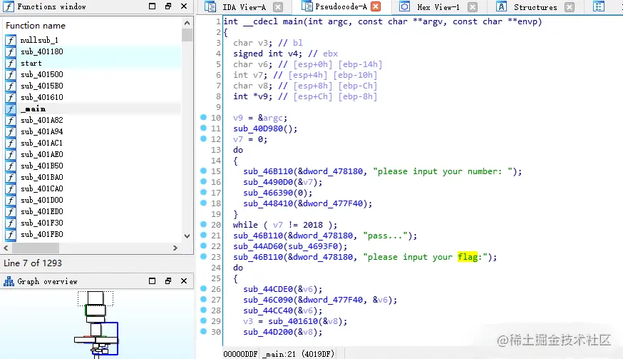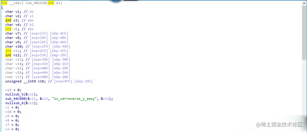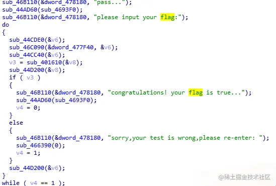 说明这里是关键函数,所以V3是我们的关键数字,要不能为空,找到V3的出处。那个sub-401610那里,进去: