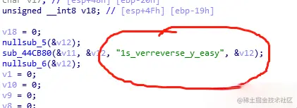 看到这个函数,对V11和a1进行处理了,所以我们推断a1是用户输入进来的,V11刚分析了一波,是我们的字符串,说明是有股匹配在里面,V11和a1是两股势力