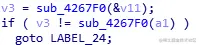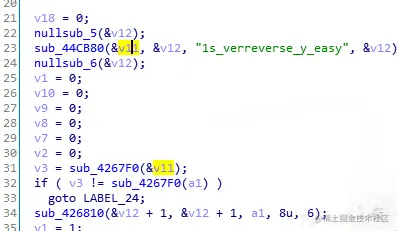 我们发现了东西,a1从8处开始剪长度为6的字符串放到V12,V11从0处开始剪辑长度为6的字符串放到v13,然后比较V13和V12的内容,不相等则跳到label-24(就是前面那个坑!),所以以此类推: