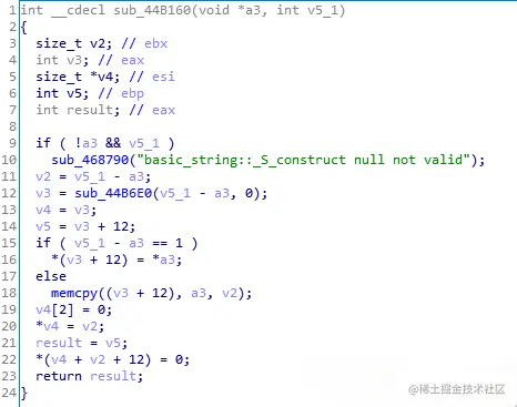 我们看到一个memcpy函数,是说把a3地址开始的数据复制到V5,V5=v3+12开始的数据,数据长度是v2,v2=v5_1-a3;