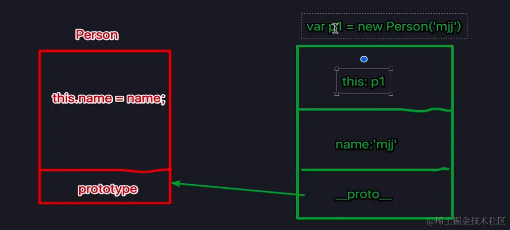 step2:将这个空的对象的原型对象,指向了构造函数的prototype属性对象p1.__proto__===Person.prototype