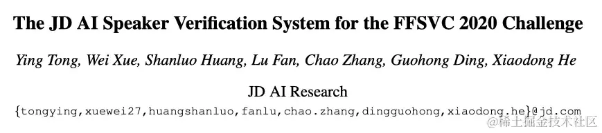 03,FFSVC 2020 Challenge JD AI声纹验证系统