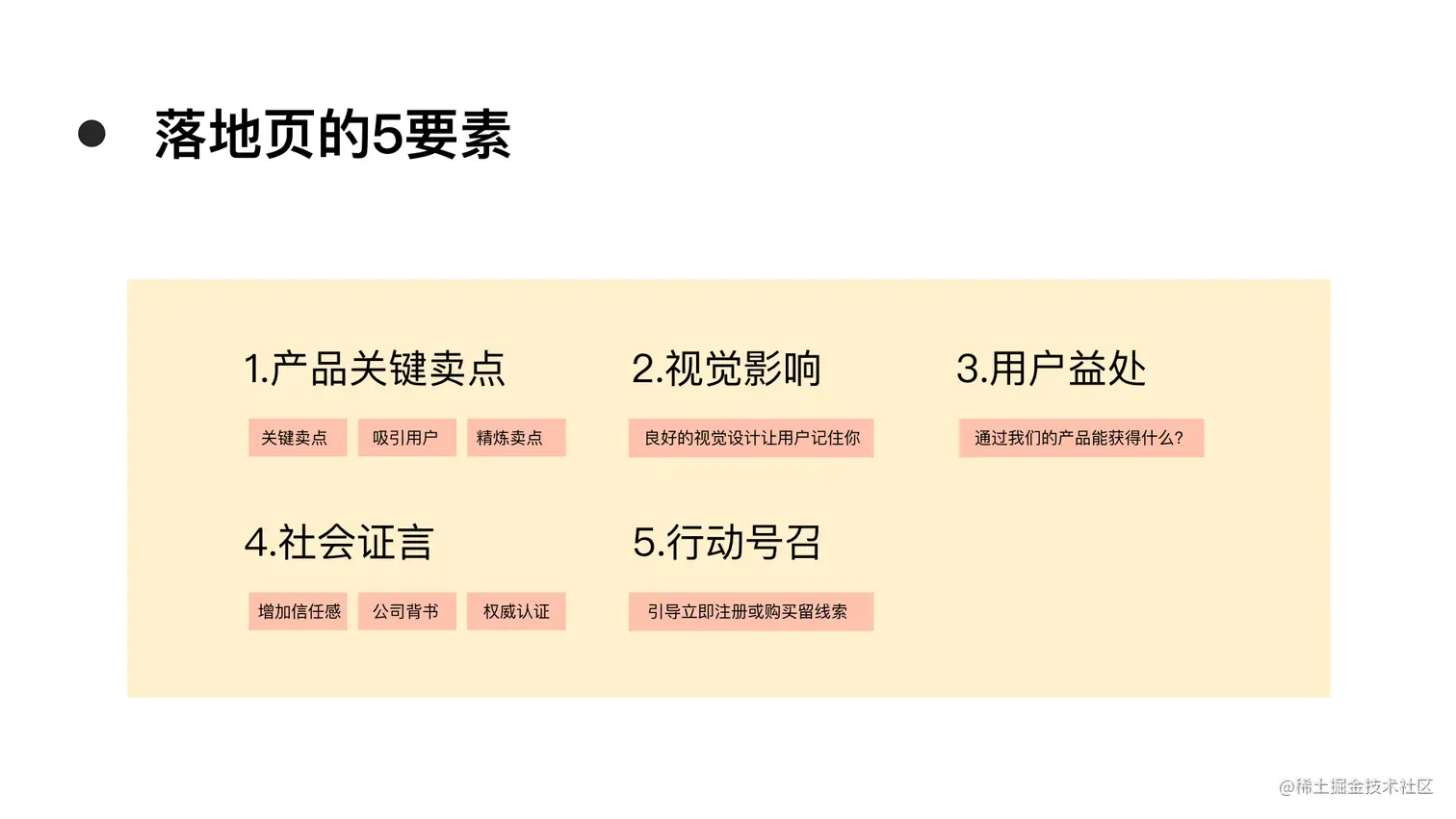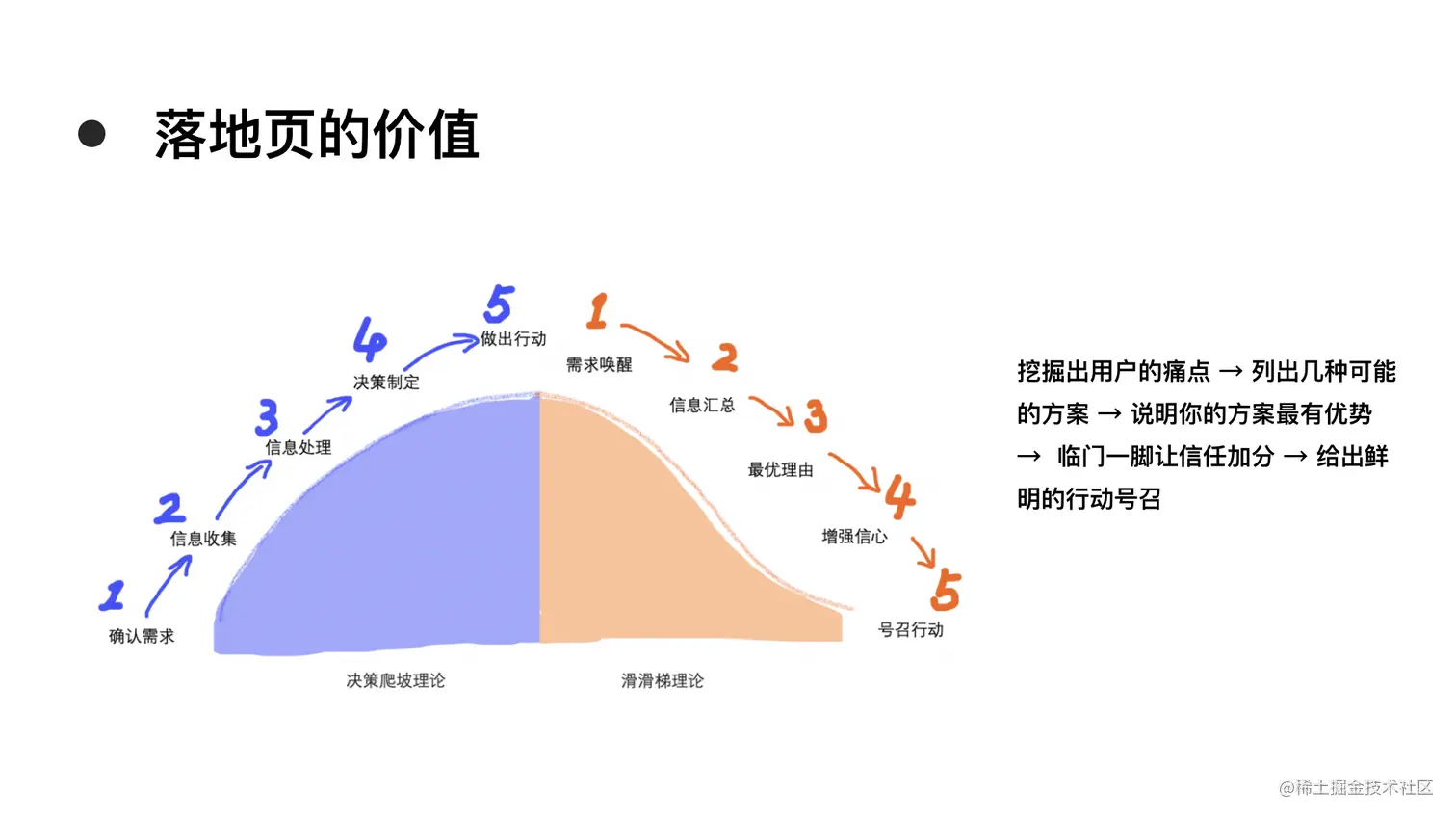 落地页的核心价值其实是说服力,及与用户达成一种共识,比如引导用户注册新用户,引导用户下单购买等,通过落地页推动用户做出如你所期望的决策。