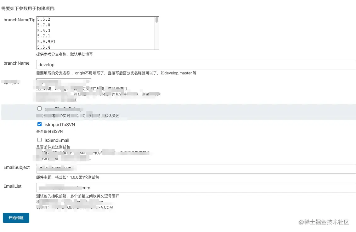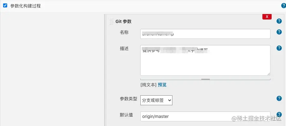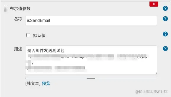 参数化构建过程:选择Git Paramter(安装插件才有),填写名称,描述,参数类型就选择分支和标签即可。这里我们可以填写选择的,字符的,bool的,根据自己情况而定。填写的名称我们在可以其他地方用$名称,来获取构建前你配置的值。举个例子(你是否发送邮箱的值就可以在后面进行配置)。