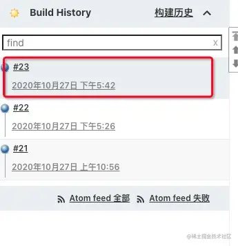 然后我们就等build history这里的进度,进度完就任务完成了,当然我们可以点击进去,看控制台输出信息,失败就在这里看报错原因,成功就显示Finished:Success。
