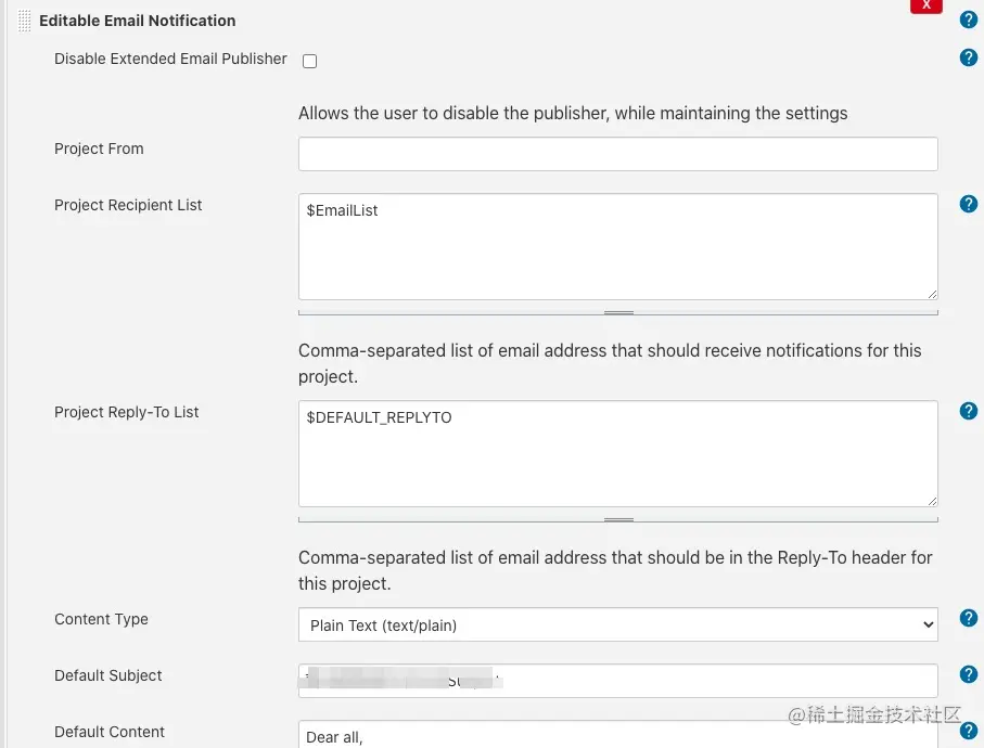 再选择Editable Email Notification来制定发送邮箱通知。Project From不用填写,Project Recipient List是填写接受者邮箱,多个用逗号隔开。Content Type看自己的Default Content内容格式来填写,Pre-send Script是发送的脚本,不用参数化设置可以不填,触发器Triggers可以选成功和失败两个,参照截图即可。