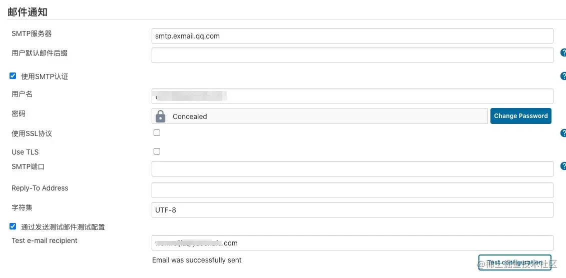 - 系统管理->系统配置->邮件通知。填写的SMTP服务器和2是一样就可以,包括端口,账号密码。测试一下,成功就没问题了。