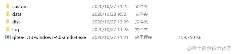 4、点击安装后需要等待几分钟,等待配置完成。配置完成后,gitea 安装目录下会生成相关的配置文件,如下图。