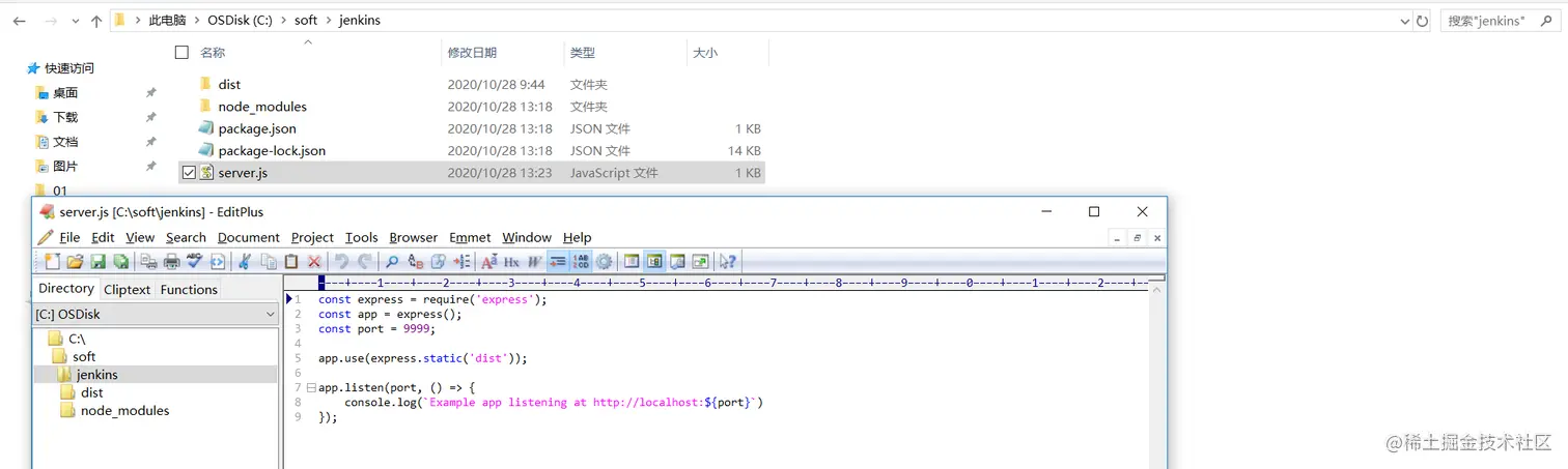 8、创建一个文件夹,作为静态服务器的资源目录,我这里是放在 C:\soft\jenkins\dist 下,可以自由修改,最好不要包含中文路径。