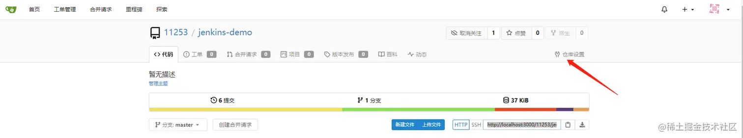 1、在刚刚创建的gitea中创建一个仓库,这里就不细说了。