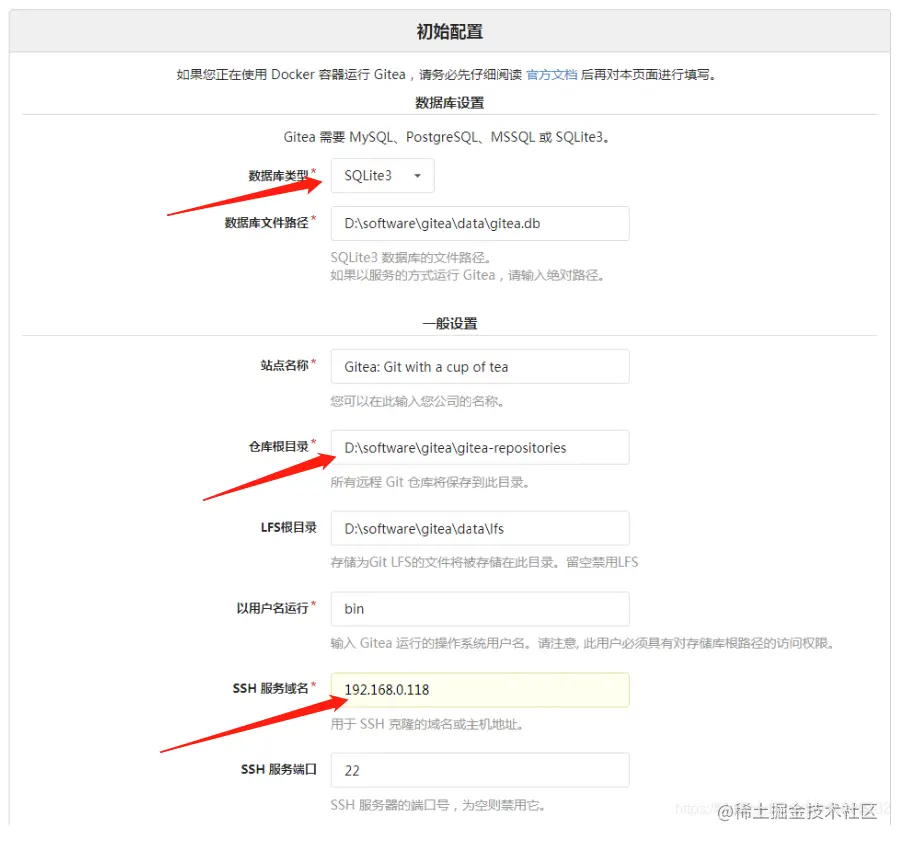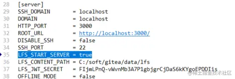6、编辑 gitea 安装目录下的 custom\conf\app.ini 文件,在里边加上一行配置(作用是开启push操作):START_SSH_SERVER = true