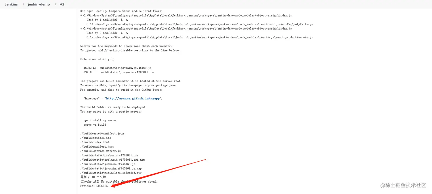 bat 'xcopy .\\build\\* C:\\soft\\jenkins\dist\\ /s/e/y' // 这里需要改成你的静态服务器资源目录