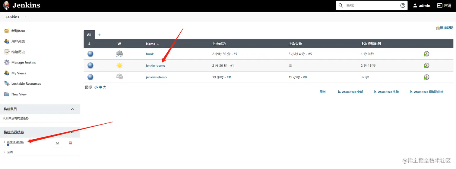 11、点击构建执行状态中的构建任务就可以看到相关进度了,或者点击刚刚创建的Items的名称,然后查看最新的构建历史也可以看到相关进度。