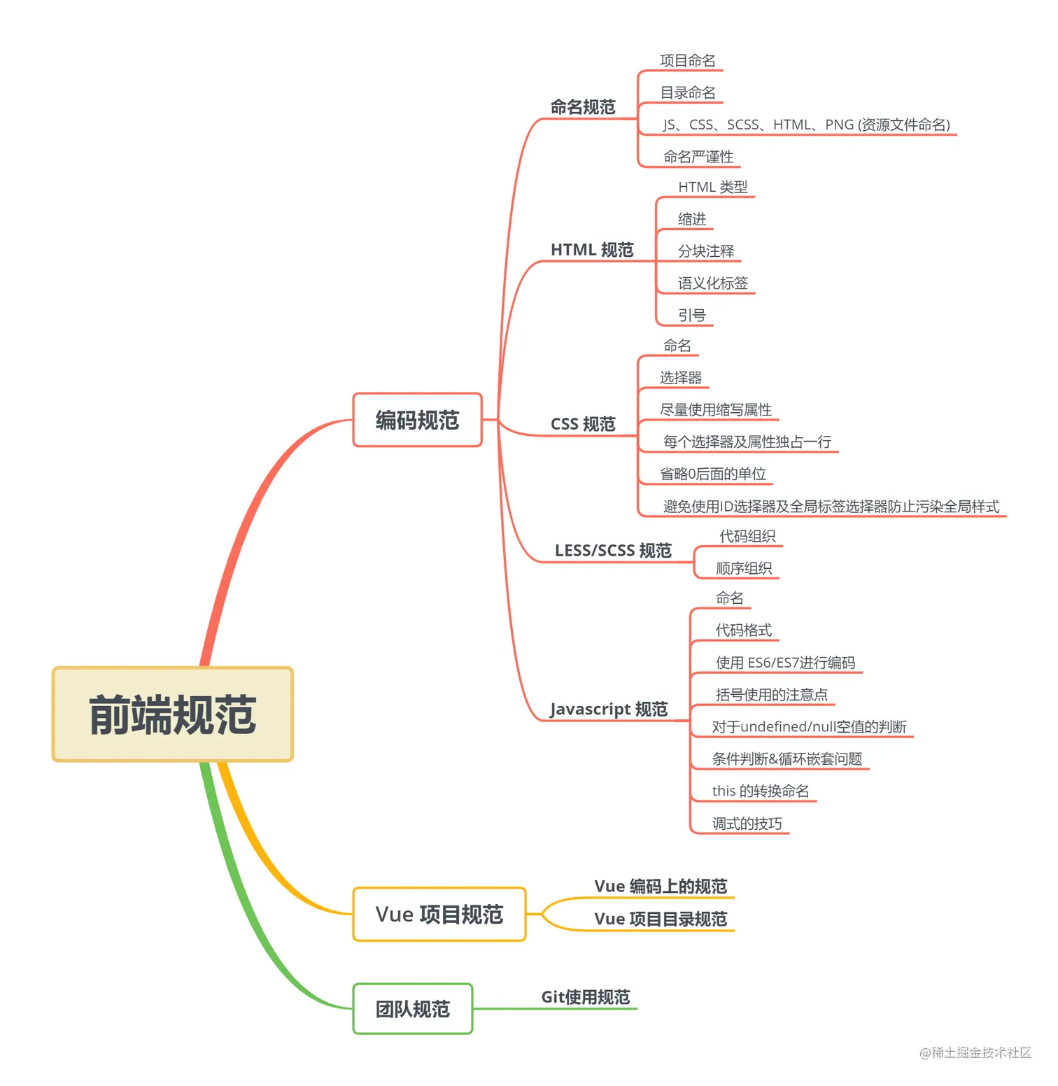 本人是从头(入门)到尾(找到前端开发工作)都是自学的,没有去过培训班但培训班的视频看了不少 😅,我深知自学会遇到很多的问题,我先拿开发规范来讲吧,这个是我目前遇到的问题:因为看的培训视频太多了,在最开始的时候跳着跳那的看,到看完一套之后,找实战教程也是各种机构的教程,所以就形成了很多不好的开发规范。因为从一开始就没有一套规范去约束我们去如何开发,网上似乎也很少这种文章。当然对于工作过的小伙伴公司肯定都会有一套开发规范,但其实有很多小伙伴都还没有工作,所以我整理了下公司的规范手册和自己平时所积累的笔记汇总了,旨在让还没有参加工作的小伙伴们有个参考,对于开发规范有足够的认知。