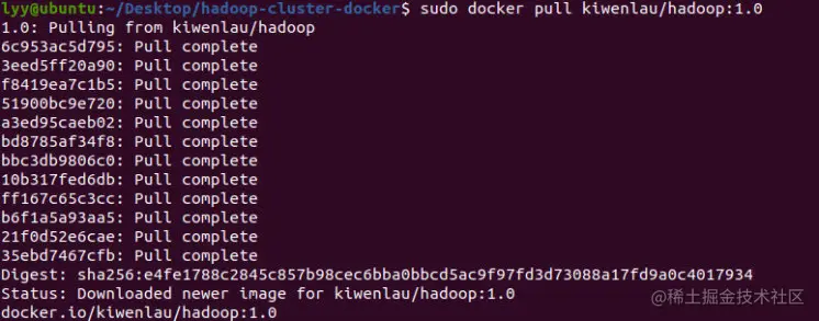 sudo docker pull kiwenlau/hadoop:1.0