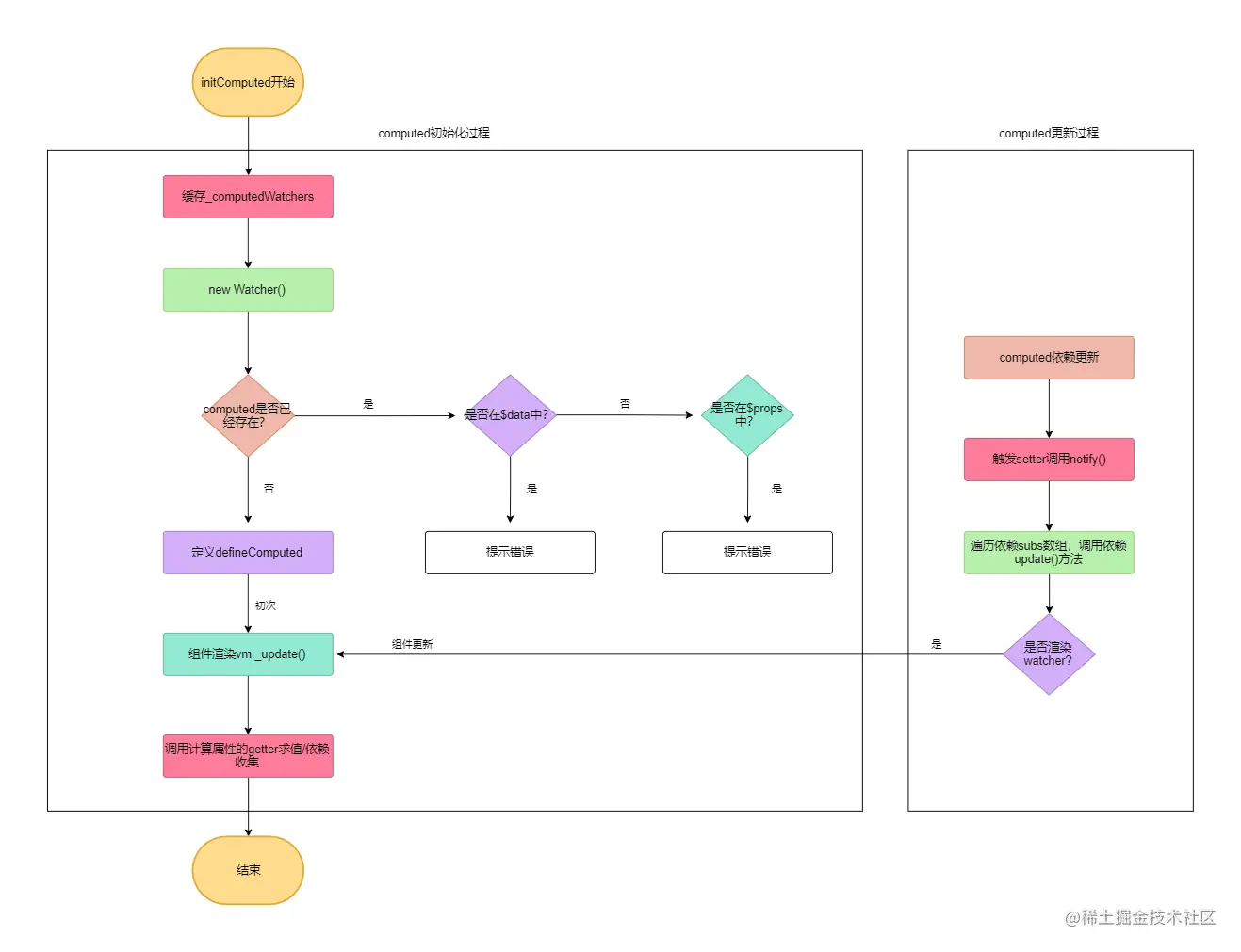 在分析完computed的相关流程后,我们可以得到如下流程图
