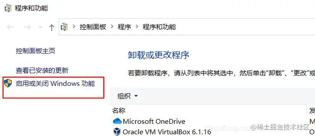点击启用或关闭Windows功能。(不管是什么版本的Windows,上面步骤就是为了找到这个,步骤不一样的话也可以搜一下这个功能怎么找到)