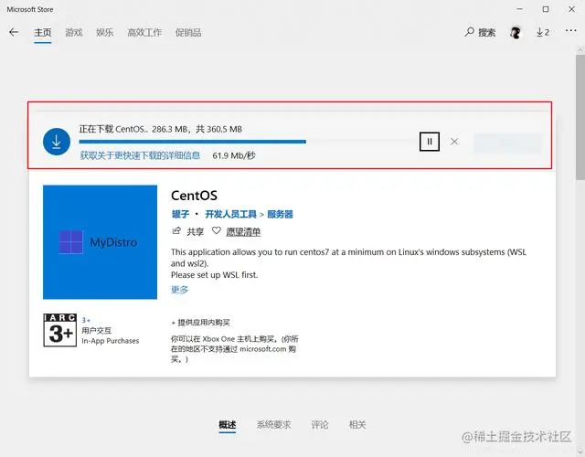 子系统也是在微软商店里面下载的。直接搜索对应的系统即可。
