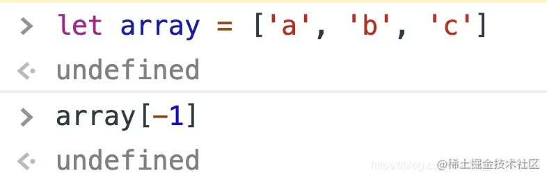 很多人认为这是一个非常有用的特性,但是不幸的是,JavaScript 目前不支持负索引语法。