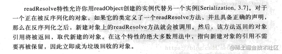 readResolve(),那么序列化之后反序列化是会变为一个新的实例,这样会破坏单例模式 - 如果存在