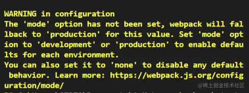 大概的意思是我们没有设置mode属性,webpack默认会使用production模式去工作,这个环境下webpack会默认帮我们去使用一些优化插件,例如压缩代码