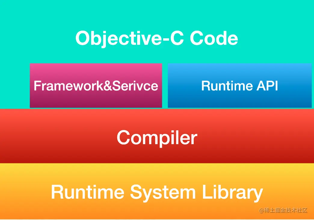 compiler就是我们了解的编译器,即LLVM,例如OC的alloc 对应底层的objc_alloc, runtime system libarary 就是底层库