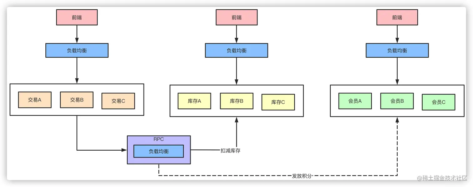对于一些不需要同步执行的接口,可以通过引入消息队列的方式异步执行以提高接口响应时间。在交易完成之后需要扣库存,然后可能需要给会员发放积分,本质上,发积分的动作应该属于履约服务,对实时性的要求也不高,我们只要保证最终一致性也就是能履约成功就行了。对于这种同类性质的请求就可以走MQ异步,也就提高了系统抗压能力了。
