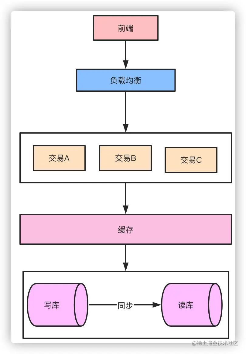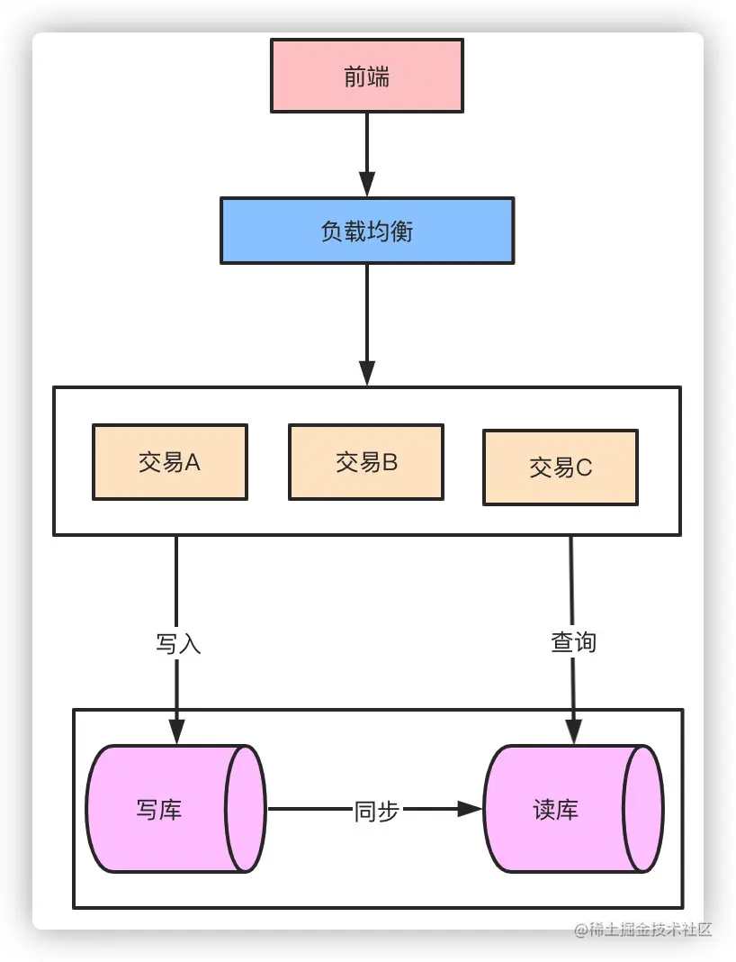 对于整个系统而言,流量应该是一个漏斗的形式。比如我们的日活用户DAU有20万,实际可能每天来到提单页的用户只有3万QPS,最终转化到下单支付成功的QPS只有1万。那么对于系统来说读是大于写的,这时候可以通过读写分离的方式来降低数据库的压力。