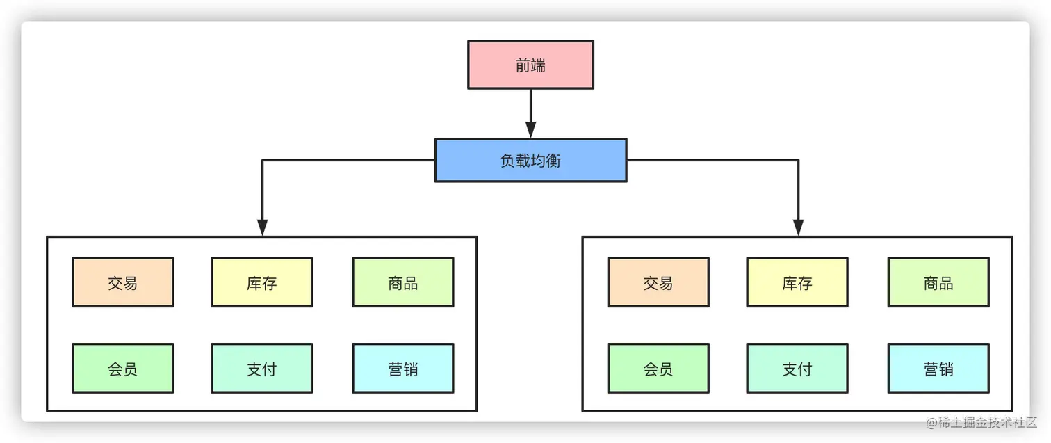 在互联网早期的时候,单体架构就足以支撑起日常的业务需求,大家的所有业务服务都在一个项目里,部署在一台物理机器上。所有的业务包括你的交易系统、会员信息、库存、商品等等都夹杂在一起,当流量一旦起来之后,单体架构的问题就暴露出来了,机器挂了所有的业务全部无法使用了。