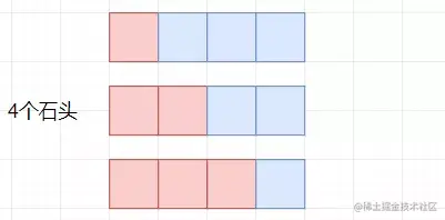 而如果石头是4个,那不管你是拿了1,2,3个,最后一个都可以被你的对手拿走,所以怎么样都赢不了。