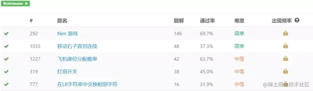 上一篇是为大家分享了一道打着“脑筋急转弯”tag的题目,然后我顺便就把这个类型的题目全部筛选出来看了看,发现总共没几个,所以就想的干脆一次全部讲完吧。