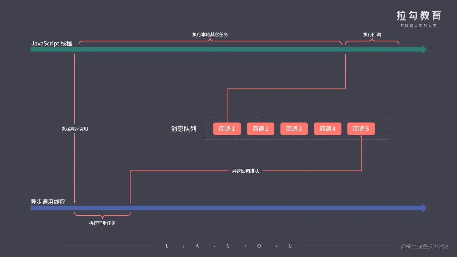 同步任务在主线程上排队执行,异步任务不进入主线程,由“任务队列”管理。这个“任务队列”也称为“消息队列”,回调函数就是归“消息队列”管理了。