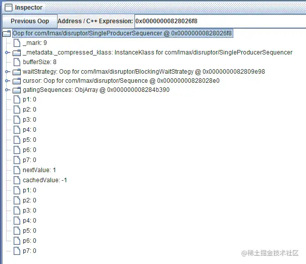 为了更清晰地阐述这个道理,我们尝试看一下SingleProducerSequencer实例的内存布局。