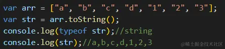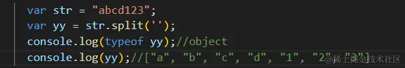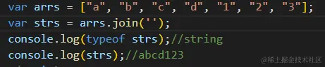 javascript字符串与数组之间相互转换 pangka啊 2020-10-29 115 阅读1分钟 //字符串转数组 split() 原理是将字符串按某种字符分割成若干字符串,并以数组的形式返回 //数组转字符串 1.toString() 2.join() 原理是将数组按某个字符拼接成字符串 如果代码是 var strs = arrs.join('-')的话,则strs打印值就是 a-b-c-d-1-2-3 以上,over。