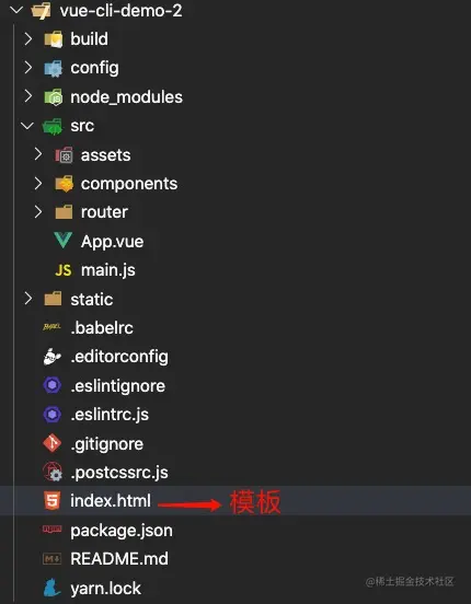 vue-cli2默认为单页面目录结构和配置👇
