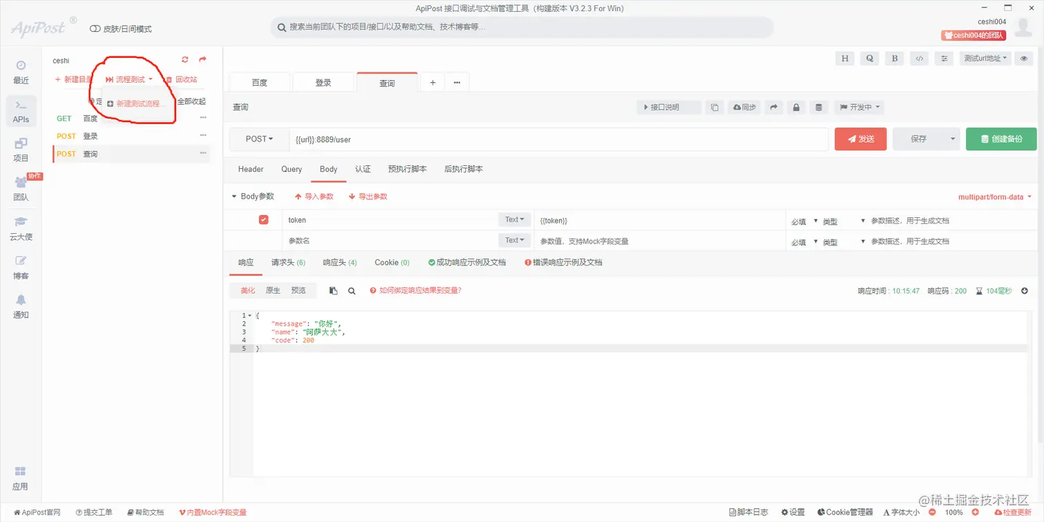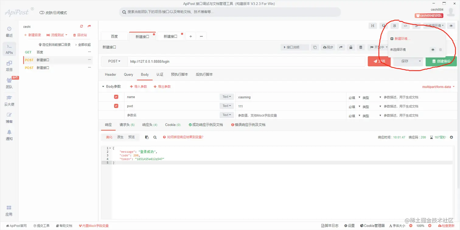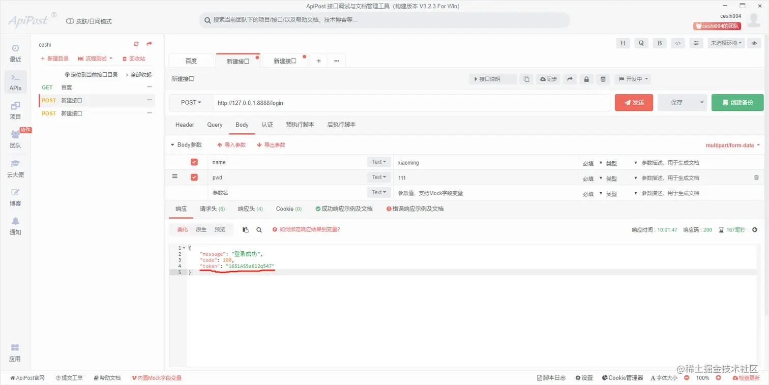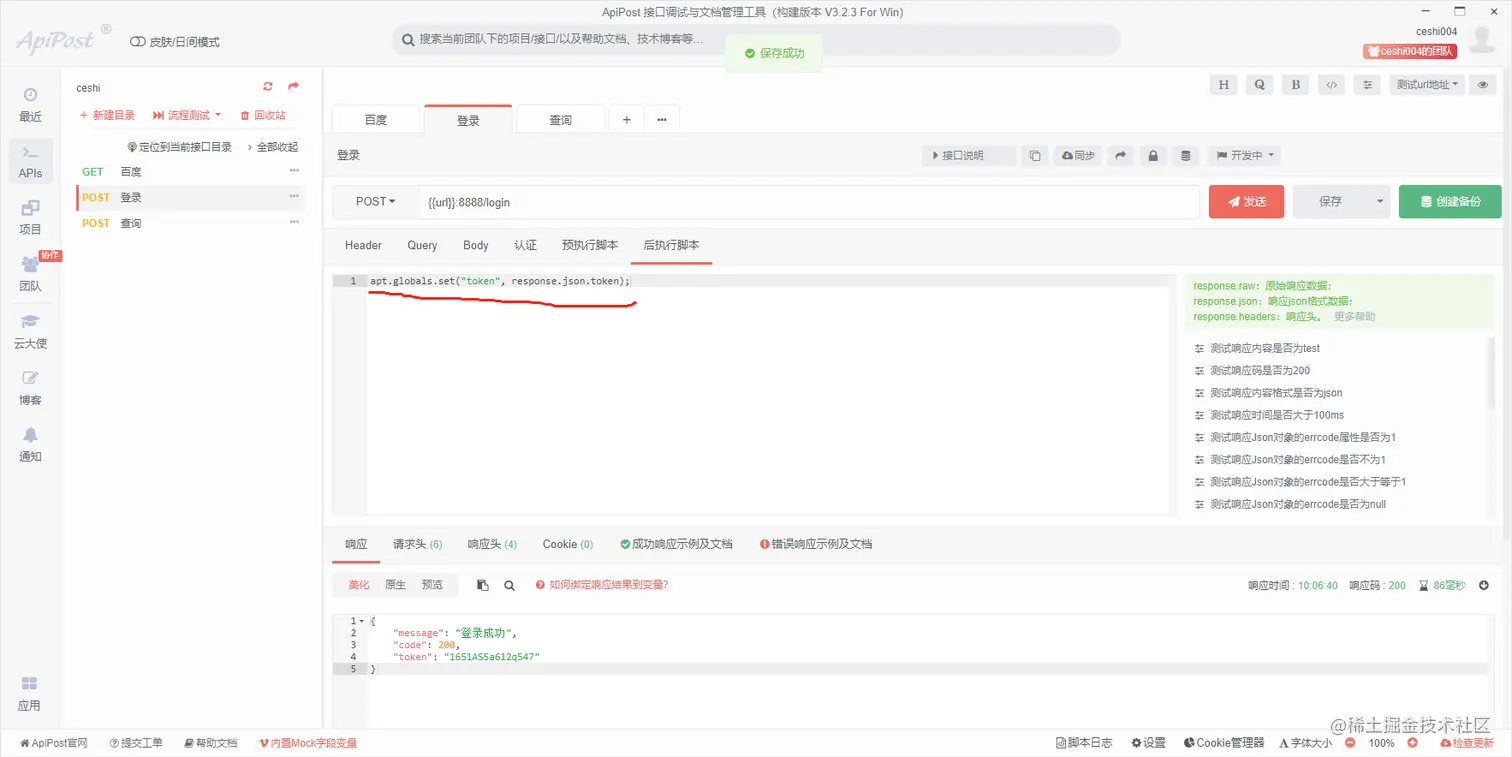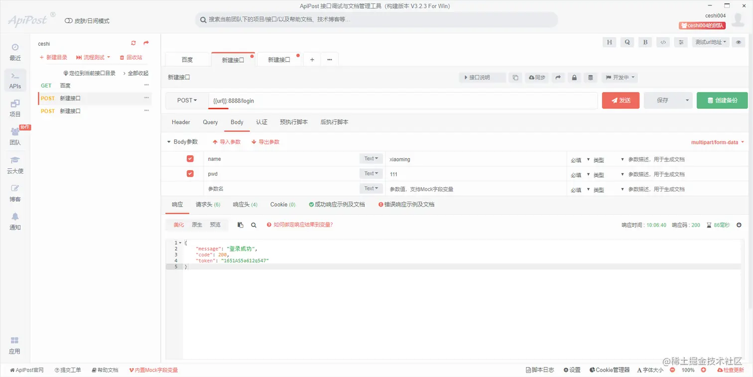 接口测试的工具大部分都可以获取登录之后返回的token值,这里给大家讲解如何用apipost获取token值的方法。 先打开apipost,进行登录接口的编写,然后获取token的值。
