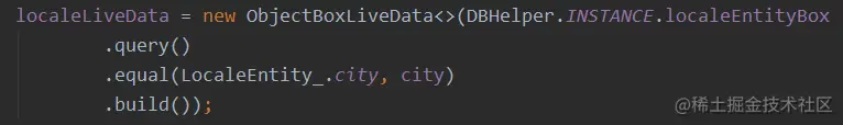 在数据库发生变化时,可以通过观察LiveData接收到通知。但是随之也带来问题,就是查询参数发生变化时,如上述代码中,city参数发生变化时,没有触发通知,这就需要到ObjectBoxLiveData类中看一下具体的实现: