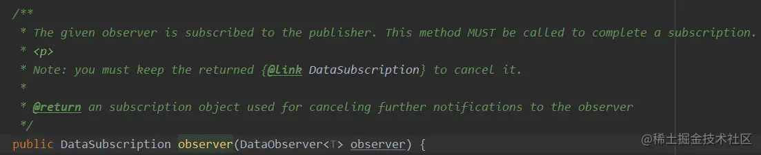 在其注释中写到,是订阅了publisher,我们继续到Query的publisher的publish方法中看一下: