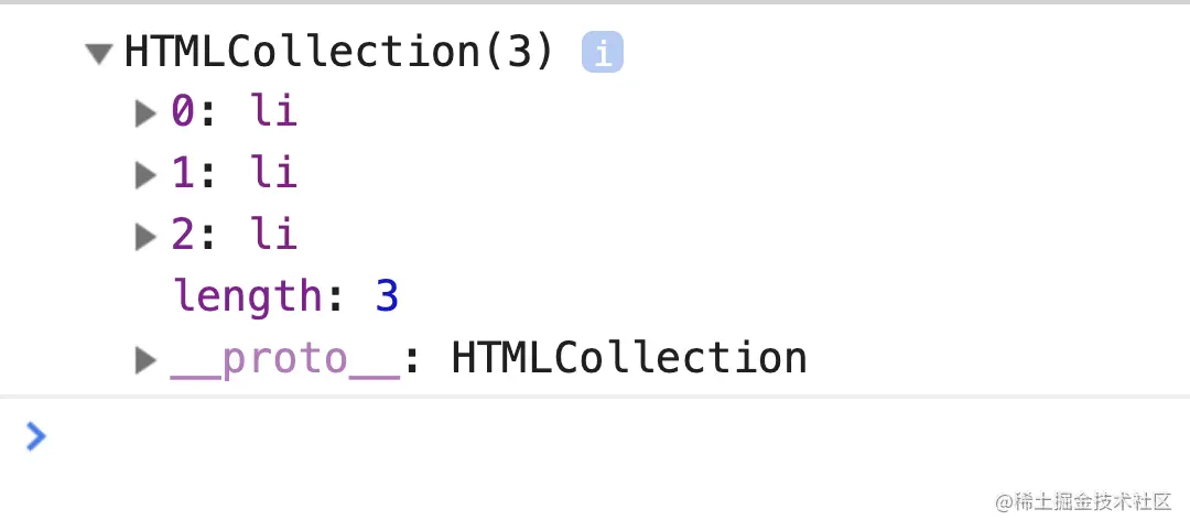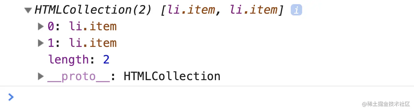 这个元素集合中的每个元素都是一个对象。我们可以通过listItems.length来获取当前集合的长度,通过for循环来遍历出每一项的元素对象。