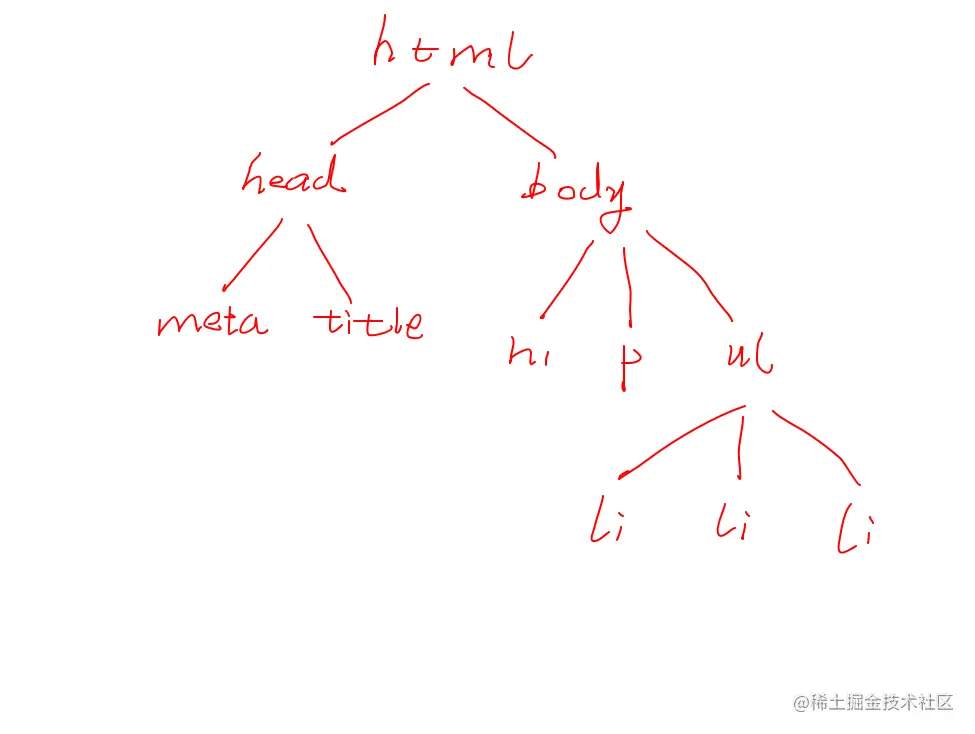<head>元素由两个子元素:<meta>和<title>(这两个元素是兄弟关系)。<body>元素由三个子元素:<h1>、<p>、<ul>(这三个元素是兄弟关系)。如果继续深入下去,我们将发现<ul>也是一个父元素。他有三个子元素,他们都是<li>元素。