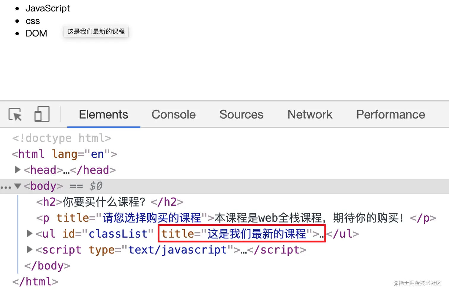 同样的情况,我们也可以通过setAttribute()方法对上述的p标签的title属性进行修改。