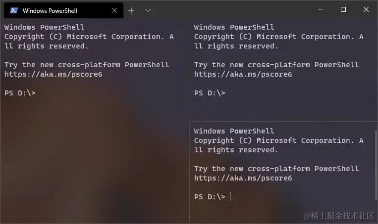 在单独的窗格中使用 Ubuntu,Windows Powershell 和命令提示符配置文件打开Windows终端: